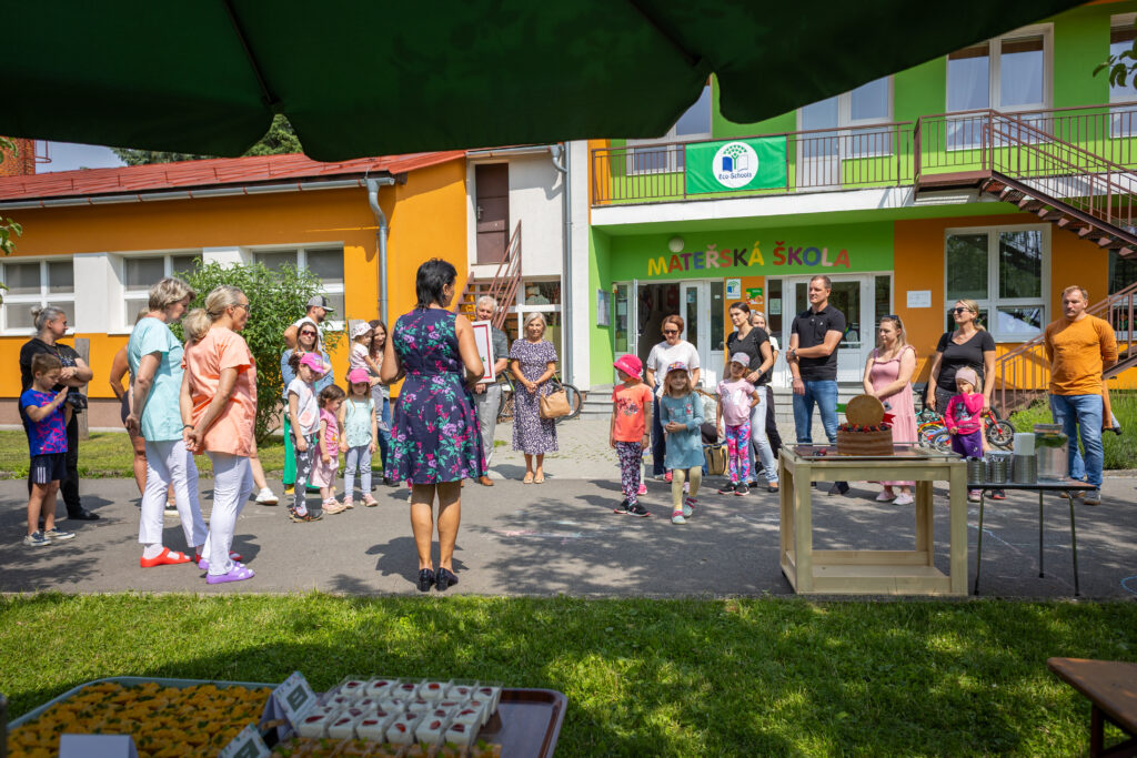 V úterý 10. 6. 2025 jsme tento úspěch slavili na školní zahradě společně s rodiči, panem starostou a vzácným hostem, paní političkou Eliškou Olšákovou. Nechyběl slavnostní ovocný dort a ochutnávka oblíbených dětských pochoutek – pomazánek, pyré a jogurtů. Děkujeme všem, kteří se na cestě za zdravějším školním stravováním podíleli.