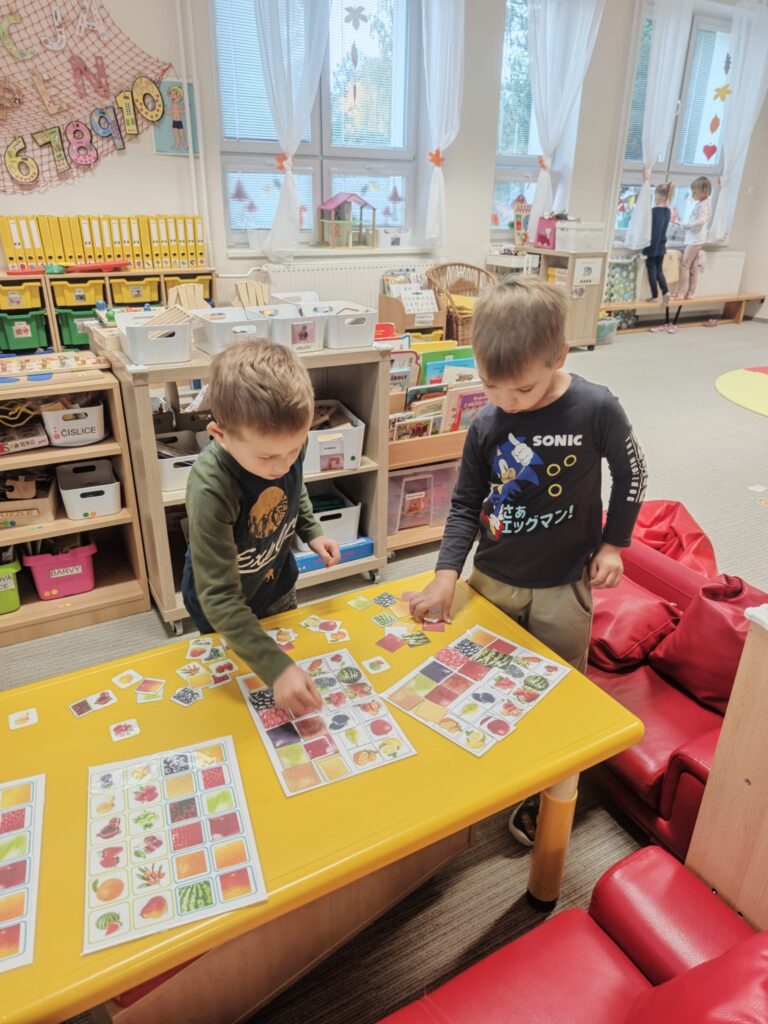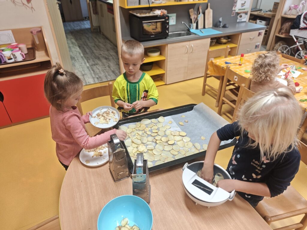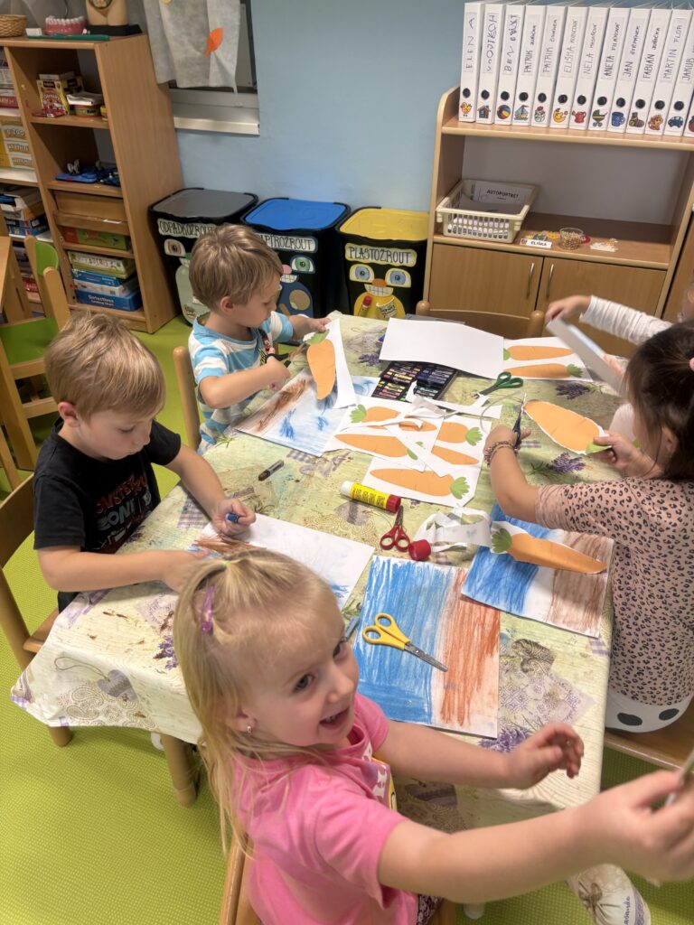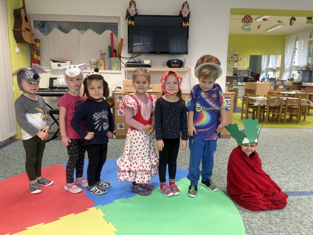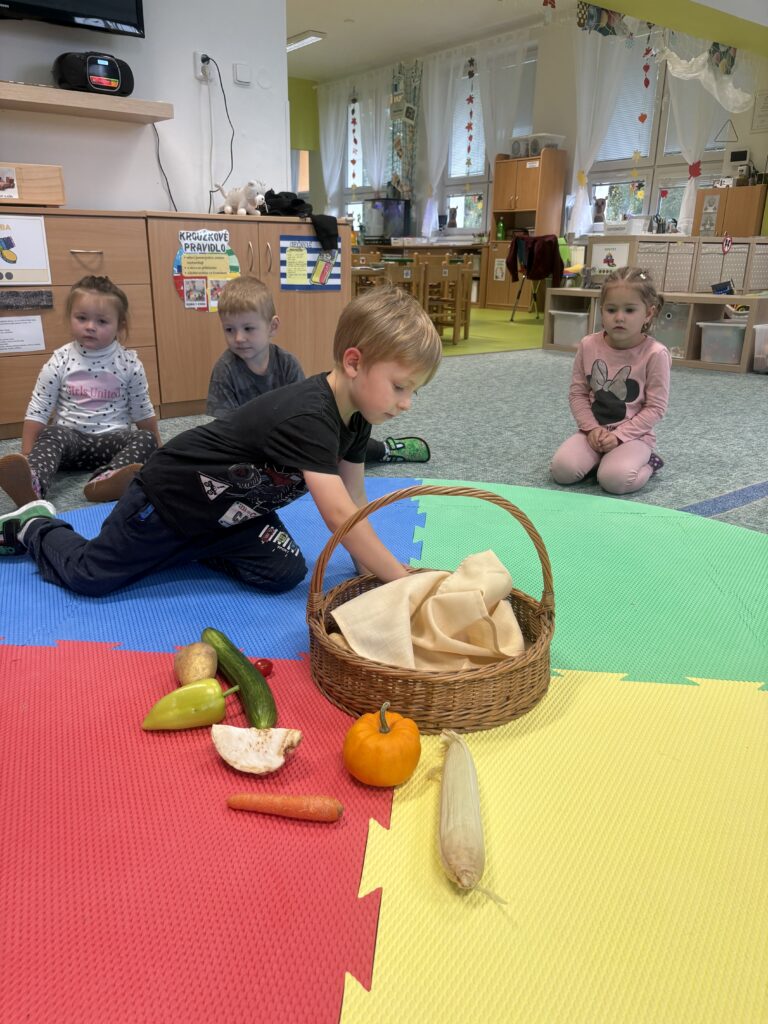 Tento týden jsme se s dětmi věnovali tématu zeleniny. Společně jsme ji poznávali všemi smysly – děti si zeleninu prohlížely, ohmatávaly, očichávaly i ochutnávaly. Zkoumaly, jak různé druhy zeleniny vypadají a jak voní. Společně jsme si také připravili domácí brambůrky, které dětem moc chutnaly. Na závěr si děti vyrobily krásné výtvory na téma zelenina a s radostí jsme si zahráli a zdramatizovali pohádku „O veliké řepě“.